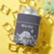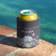 Brew crew wedding can coolers. Romantic dusty blue florals and leaves on gold geometric angled frame. Modern elegant botanical design ideal for spring or summer weddings.
