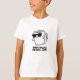 The t-shirt feels and looks great quality, a good thick cotton. It will be a little big for my son, but that means he will be able to wear it and not out grow it too soon. The print was as described on the order when personalised. True size, shape and colour T-shirt- thanks.