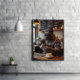 This energetic French Bulldog poster turns your wall into a hilarious coffee scene. The pup, dressed in a green and white flannel shirt with suspenders and glasses, is hard at work frothing milk and pouring a latte masterpiece. His bug-eyed focus shows he’s deep in the grind. “Bark Roast” and other punny drinks fill the chalkboard menu. Great for anyone who needs a boost of humour with their caffeine fix.