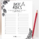 Brewery Baby - B&W - Baby Shower Baby ABCs Game