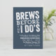 Brews before the I Do's! Celebrate before a wedding - either a rehearsal dinner, engagement party or bachelor/bachelorette party - with this cool brewery-themed invitation. The white type on slate blue can be customised with all the details of the party. Matching party decor also available.
