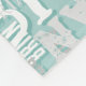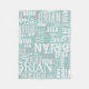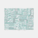 This blanket is not only a source of comfort but also a canvas for a unique and trendy design. The contemporary aesthetic of white and grey fonts, repeated all over the light-teal-blue background, creates a captivating pattern that stretches in all directions, adding a touch of modern elegance to any space.
