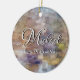 A 1st Christmas ornament that can be customised with your baby's name, birthdate, weight and length featuring a brick abstract pastel painting with a combination of fall and winter shades of brown, blue, white, green and yellow.