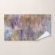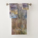 A customisable bathroom set with your name featuring a brick abstract pastel painting with a combination of fall and winter shades of brown, blue, white, green and yellow.