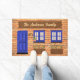 This charming and personalised Doormat can be a perfect way to welcome your guests. This eye-catching Doormat features a Blue door design and a Text that you have the opportunity to change, making it a unique and meaningful addition to your House.