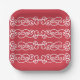 Brick red white scrolls paper plate