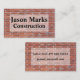 The Brick Slabs Pattern Masonry Business Card is a striking design that will impress clients and prospects. With a simplistic, yet creative design, this card is perfect for any business looking to showcase their creativity. This Brick Slabs Pattern Masonry Business Card features a unique pattern that mimics the process of bricklaying. This Brick Slabs Pattern Masonry Business Card will not only make your business stand out, but will also be a great conversation starter.