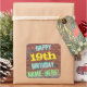 This fun birthday-themed sticker design features a message like "HAPPY 19th BIRTHDAY, NAME-HERE!", where the name can be personalised. The background features a representation of a brick wall consisting of some reddish-brown coloured bricks. The customisable message text features colours like blue, yellow, and green, and it has an appearance inspired by that of painted graffiti. Stickers like these could perhaps be given as a birthday gift, or perhaps be used as decorations at a birthday party for somebody who is celebrating their nineteenth birthday. [~Z0000273]