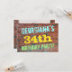 This fun birthday party invitation design features a message like "GEORGIANA’S 34th BIRTHDAY PARTY!", where the name can be personalised, on the front. The background features a representation of a brick wall consisting of some reddish-brown coloured bricks. The customisable message text on the front features colours like blue, yellow, and green, and it has an appearance inspired by that of painted graffiti. The back features a customisable message that could include relevant details about the birthday party. Birthday party invitations like this might be a fun way to invite family and friends to a birthday party being held for somebody who is celebrating their thirty fourth birthday. [~Z0000287]