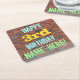 This fun birthday-themed coaster design features a message like "HAPPY 3rd BIRTHDAY, NAME-HERE!", where the name can be personalised. The background features a representation of a brick wall consisting of some reddish-brown coloured bricks. The customisable message text features colours like blue, yellow, and green, and it has an appearance inspired by that of painted graffiti. Coasters like these might be useful as practical decorations at a birthday party for somebody who is celebrating their third birthday. [~Z0000288]