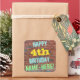 This fun birthday-themed sticker design features a message like "HAPPY 4th BIRTHDAY, NAME-HERE!", where the name can be personalised. The background features a representation of a brick wall consisting of some reddish-brown coloured bricks. The customisable message text features colours like blue, yellow, and green, and it has an appearance inspired by that of painted graffiti. Stickers like these could perhaps be given as a birthday gift, or perhaps be used as decorations at a birthday party for somebody who is celebrating their fourth birthday. [~Z0000273]