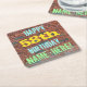 This fun birthday-themed coaster design features a message like "HAPPY 58th BIRTHDAY, NAME-HERE!", where the name can be personalised. The background features a representation of a brick wall consisting of some reddish-brown coloured bricks. The customisable message text features colours like blue, yellow, and green, and it has an appearance inspired by that of painted graffiti. Coasters like these might be useful as practical decorations at a birthday party for somebody who is celebrating their fifty eighth birthday. [~Z0000288]