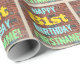 This fun birthday-themed wrapping paper design features a message like "HAPPY 81st BIRTHDAY, FIRSTNAME!", where the name can be personalised. The background features a representation of a brick wall consisting of some reddish-brown coloured bricks. The customisable message text features colours like blue, yellow, and green, and it has an appearance inspired by that of painted graffiti. Wrapping paper like this could perhaps be used when wrapping birthday gifts being given to somebody who is celebrating their eighty first birthday. [~Z0000274]