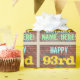 This fun birthday-themed wrapping paper design features a message like "HAPPY 93rd BIRTHDAY, NAME-HERE!", where the name can be personalised. The background features a representation of a brick wall consisting of some reddish-brown coloured bricks. The customisable message text features colours like blue, yellow, and green, and it has an appearance inspired by that of painted graffiti. Wrapping paper like this could perhaps be used when wrapping birthday gifts being given to somebody who is celebrating their ninety third birthday. [~Z0000274]