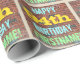 This fun birthday-themed wrapping paper design features a message like "HAPPY 94th BIRTHDAY, FIRSTNAME!", where the name can be personalised. The background features a representation of a brick wall consisting of some reddish-brown coloured bricks. The customisable message text features colours like blue, yellow, and green, and it has an appearance inspired by that of painted graffiti. Wrapping paper like this could perhaps be used when wrapping birthday gifts being given to somebody who is celebrating their ninety fourth birthday. [~Z0000274]