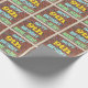 This fun birthday-themed wrapping paper design features a message like "HAPPY 9th BIRTHDAY, NAME-HERE!", where the name can be personalised. The background features a representation of a brick wall consisting of some reddish-brown coloured bricks. The customisable message text features colours like blue, yellow, and green, and it has an appearance inspired by that of painted graffiti. Wrapping paper like this could perhaps be used when wrapping birthday gifts being given to somebody who is celebrating their ninth birthday. [~Z0000274]