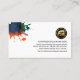 Overleaf, in a white cover with paint splatter, details are over on the right side of the card. At the top is a gold home landscape logo you can use followed by your prestigious name, the contact details and a slogan caption option.