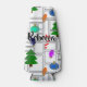 This bottle cooler has a geometric design of Christmas trees, candy canes, lights, and ornaments with grey rectangle outlines on top. Like the design but want a different colour? Message me.