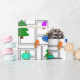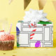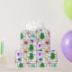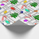 This wrapping paper has a geometric design of Christmas trees, candy canes, lights, and ornaments with grey rectangle outlines on top. Like the design but want a different colour? Message me.