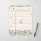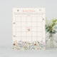 This is a bohemian bridal bingo game card. The design features a colourful and delicate field of summery wildflower florals in pretty shades of blue, terracotta, pink, purple and yellow. The butterflies and bees add the finishing whimsical and pretty touch. You can customise all of the text to your requirements.