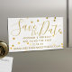 A delicate bridal blush pink with gold confetti on these magnetic save the dates. Add your future wedding details and ask your guests to stick them somewhere they won't forget