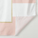 Let's toast the bride! Wedding bridal shower brunch welcome display / backdrop sign features stylish soft black text that can be personalised with the bride-to-be's name, event title, and date. Wording is accented by gold coloured toasting champagne / mimosa glass flutes. A gold coloured frame surrounds the wording and a chic pattern of wide horizontal blush pink and white stripes borders the design.
