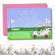 This golf-themed bridal shower thank you card is crafted with the bride-to-be at the heart of its design. It features a heart-shaped putting green and a flag pin fluttering in the breeze, emblazoned with the words "Bride to Be." The golf cart is festively adorned with champagne, gifts, a tiara, and an intricately illustrated bridal shower cake. A bridal veil elegantly drapes from the golf bag, adding a charming touch. Designed by Daphsam, this one-of-a-kind thank you card comes with an easy-to-use template to ensure stress-free planning.