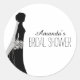 Bride Silhouette with bridal gown. Custom Name Bridal Shower Favour Stickers. Black and White