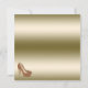 Chic bridal luncheon wedding shower invites in black and gold with touches of Art Deco style- Elegant faux gold metal look scrolls decorate the corners. Centred is a gold metallic effect decorative circle frame and leaf scrolls. A pair of gold glitter high heels is displayed in the circle. Below is the bride to be's name and other bridal luncheon details in gold hued lettering, including RSVP and store registry details. Back has gold gradient metal look background with matching pair of gold glitter high heel shoes in the lower corner. In sophisticated black and gold with faux glitter accents for sassy diva brides. Works for Great Gatsby theme weddings as well.