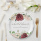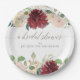 Bridal Shower Autumn Burgundy Roses Leaf Floral Paper Plate