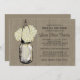 Perfect for a country style Bridal Shower or maybe you just love Mason Jars! A Barn wood panel background with a Mason Jar hanging on a hook filled with Ivory Green coloured Hydrangea Flowers. If you have any questions on this design or want a colour change please email me paula@labellarue.com Also check for the Wedding Suite, INVITATION, RSVP, RECEPTION and GUEST SEATING Cards to match! Be sure to pick your favourite cardstock to print it on.