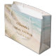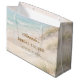 Delight your guests with this romantic coastal bridal shower gift bag. It features a soft watercolor landscape with rolling turquoise waves, sandy dunes, and delicate sea grass. These bags are perfect for handing out party favors at a beach destination wedding or summer bachelorette weekend.