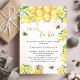A Bridal Shower invitation with a white and golden watercolored background. Decorated with bumble bees, melting honey and honeycomb with yellow florals, flowers and a honey jar. With the text: Bride to bee. Personalise and add the name of the bride to bee. Golden and black letters.