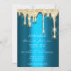 Bridal Shower Birthday 16th Gold 3D Drip Teal Invitation