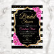 Elegant black white pink design with faux glitter. Black and white stripes with pink roses. Perfect for a stylish Bridal Shower.