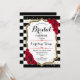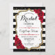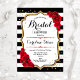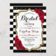 Bridal Shower - Black White Stripes Gold Red Roses Invitation