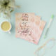 A rose gold, blush pink gradient background. A blonde bride in the background. Personalise and add a name and party details.