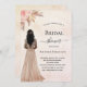 A rose gold, blush pink gradient background. A bride, pink roses, pampas grass. Personalise and add a name and party details.