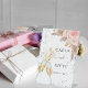 For a Bridal Shower. A white background, pink flowers and pampas grass. Bubbles and a pair of flutes. Text: Cards and gifts. Thank you!