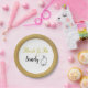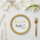 This gold glittery bride-to-be paper plate features a silver engagement ring plus the bride's name. A chic gold glitter design that is perfect for a modern bridal shower. Shown is a plate for appetizers or desert. A larger entree size or bowl is also available. Choose the paper party plate that is right for your needs.