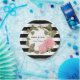 Trending for this year is black and white stripes mixed with romantic pink florals. This one has a peony wreath with mixed vines and rose leaves and a tiny faux gold glitter band with pink colour palette that mixes dramatically with the modern, wide striped background. Easy to mix and match for a dramatic and elegant bridal shower theme! The bride's name is personalised using the template field and there are coordinating products to allow you to easily and inexpensively throw a memorable shower!