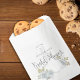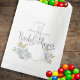 this design features a candy favours classic calligraphy script, a minimalist elegant simple bridal shower, a stylish fancy typography script, a bride to be for her, a botanical floral greenery rose flowers, a blue foliage garden elegant, with a wedding dress gown chic, food candy treat cookie favour, a bridal shower party supplies, a wedding classic traditional celebration