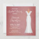 Bridal Shower Elegant Soft Pink Invitation designed with a Bridal Gown sketch on a soft pink background with white text. The invitation text includes: The Bride's Name, Shower Date, Time, Location and Host and RSVP Details. The reverse side is a matching soft pink background. To personalise, simply insert your details into our easy template, replacing the sample text.