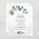Bridal Shower Greenery Eucalyptus Watercolor Invitation card featuring a blush background and trendy typography. A great choice for a botanical wedding themed shower.