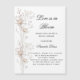 On front: White background, rose gold coloured flowers. Personalise and add a name and party details. Text: Love is in Bloom.