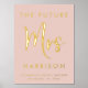 Chic "The Future Mrs" blush pink welcome poster sign for your bridal shower with real gold foil and "Mrs" written in a large elegant script. Personalise with your future married name, first name and shower date.