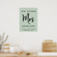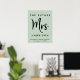 Modern and chic "The Future Mrs" personalised sage green welcome poster for your bridal shower. "Mrs" is written in a large elegant script, and you can personalise with your future married name, first name and shower date.