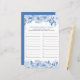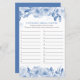 Bridal Shower Game Blue Floral Answer Sheet