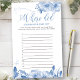 Bridal Shower Game card, personalised with the names of the bride and groom. Dusty Blue floral design with watercolor flower blooms and foliage and elegant calligraphy. Designed for the wedding or bridal shower photo game "where were they" or "where did they go" with numbered lines for your guests to add up to 12 answers.