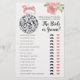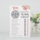 Personalise this wedding and floral disco ball bridal shower he said she said game with your own questions. Customise each line with your own lines. A glam and pretty silver look disco ball hangs from a pink gossamer pink ribbon. Pink peony and rose flowers on the edge. The black has a matching pink and white polka dot heart design on it. Have your guests circle the lip or moustache to indicate if each sentence were said by the bride or groom.Designed by © CHRISSY H. STUDIOS, LLC. ALL RIGHTS RESERVED.